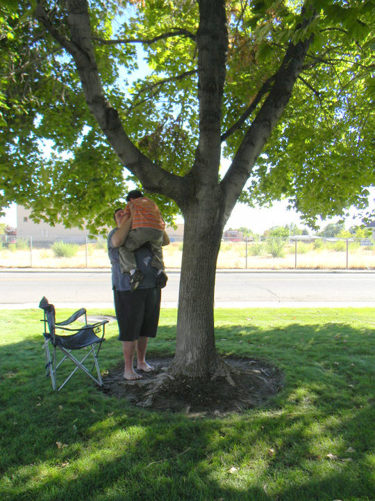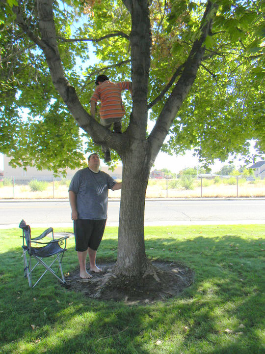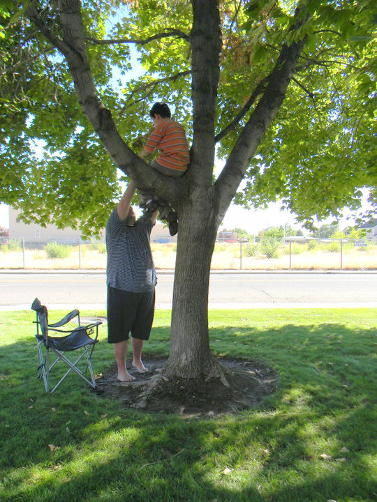 Brayden got himself stuck in a tree. He wasn't sure how he ended up there and was pretty nervous.